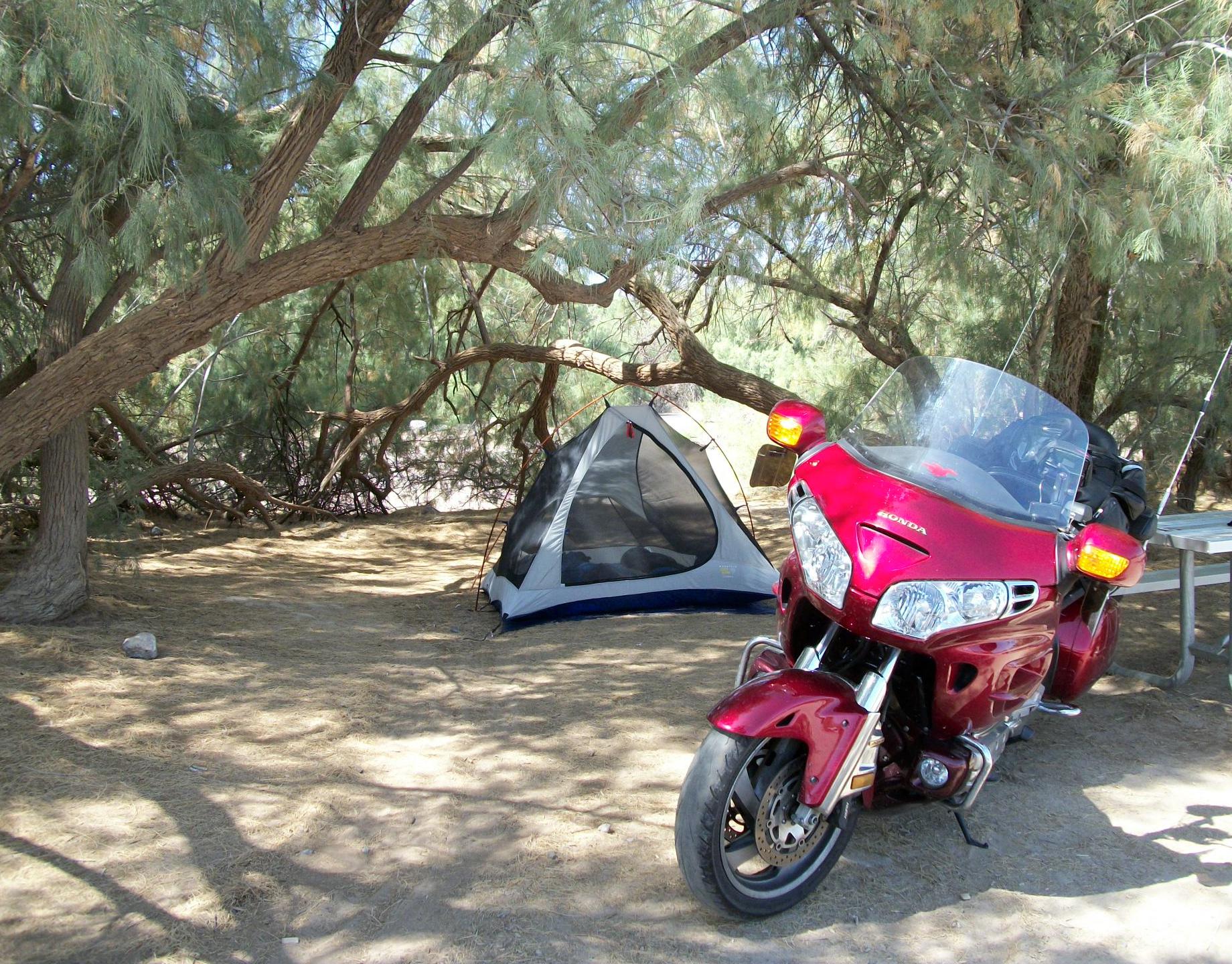 There was no need for a reservation this early in the year at the Furnace Creek Campground in Death Valley. This is not a venue that attracts the masses I encountered at Grand Canyon or at Arches National Park, although I really can’t say why. Despite it’s lethal reputation, the deadliest things I encountered in this awe-inspiring area were the merchants who seemed hell bent on getting every nickle I had in my pocket. For a small–I mean smaller than a Campbell soup can–jar of peanut butter I paid $3.50. (Remember: This was in 2011.) Nonetheless, the experience of visiting and riding here remains one of the highlights of my trip. I’ll show you more of it in a moment.