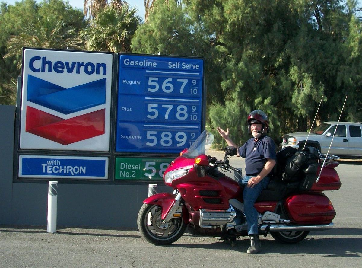 Within a couple of hours I had a message from an administrator on the GL1800 Riders discussion board. He was half a country away and couldn’t help me, but he gave me a list of Gold Wing owners in my immediate area, and he suggested that I call one of the group’s more active member who just happens to live in Boulder City. I got hold of Matt Sheen on Sunday morning, and that’s when the biker gods started to smile on me. Matt had just recently removed a nearly new, rear tire from his Gold Wing as part of a new riding configuration. The tire was still at the service shop, and he would make arrangements for his mechanic to put the tire on my Gold Wing on Tuesday. He told me to go ahead with my Sunday trip to Death Valley and he would take care of the details before he, himself, left on a motorcycle trip the next morning, headed for Yosemite. He would leave voice mail on my cell phone describing the final arrangements.