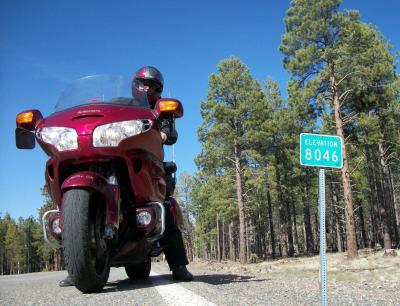 Riding out of Cottonwood, the elevation markers registered my steady ascent–a thousand feet before I reentered Sedona, and another 2,500 feet of rise on the canyon roads leading back through Flagstaff at 7,000 feet. Late in the morning I passed over the high point of the day’s ride; it was also the ridge line that had protected me all morning from the harsh north winds.
