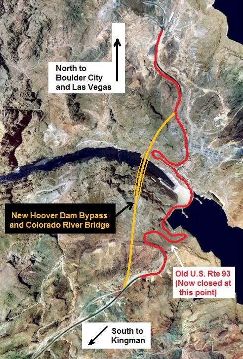 Six months before my 2011 visit, progress caught up with that nightmare of slow-moving miasma in both directions. That old U.S. 93 is now blocked just south of Hoover Dam. (See map). In fact, it is no longer called U.S. 93. It is simply called the Hoover Dam Access Road, and that’s all it’s used for—tourist travel and service access to the dam… and only from the north.