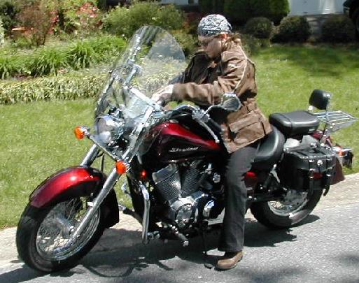 Delcia graduated from street rider to highway traveler on the Honda Shadow. Our day rides grew longer and longer. During our first year of riding, we put our bikes on a trailer and ventured up the east coast. We stopped and unloaded the bikes to ride in Colonial Williamsburg, in eastern Massachusetts, and along the coast of Maine, during three exciting weeks of A Riding Vacation. Later in the year, we took our first overnight, motorcycles-only road trip to a lakeside retreat in Alabama.
